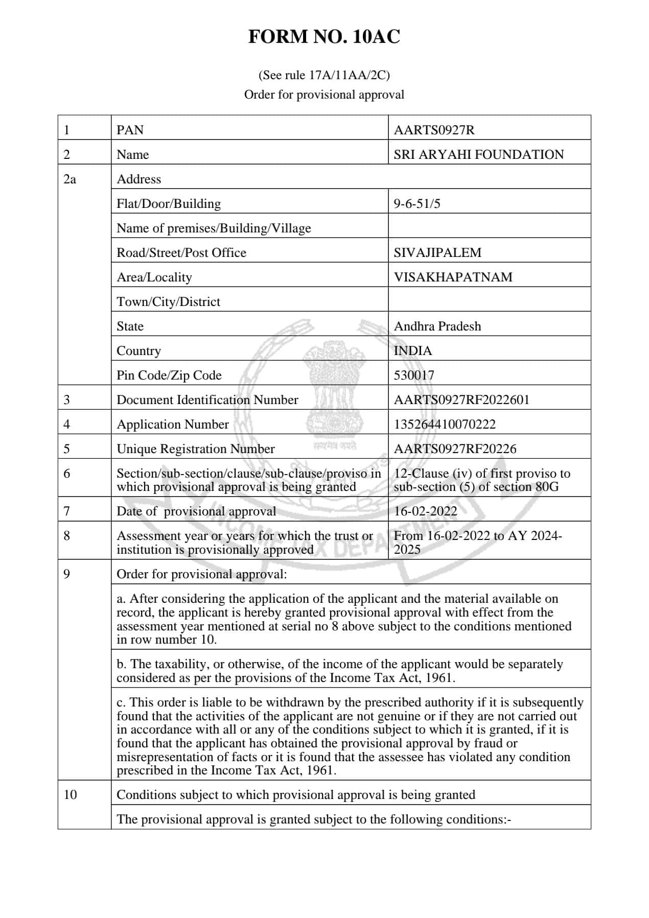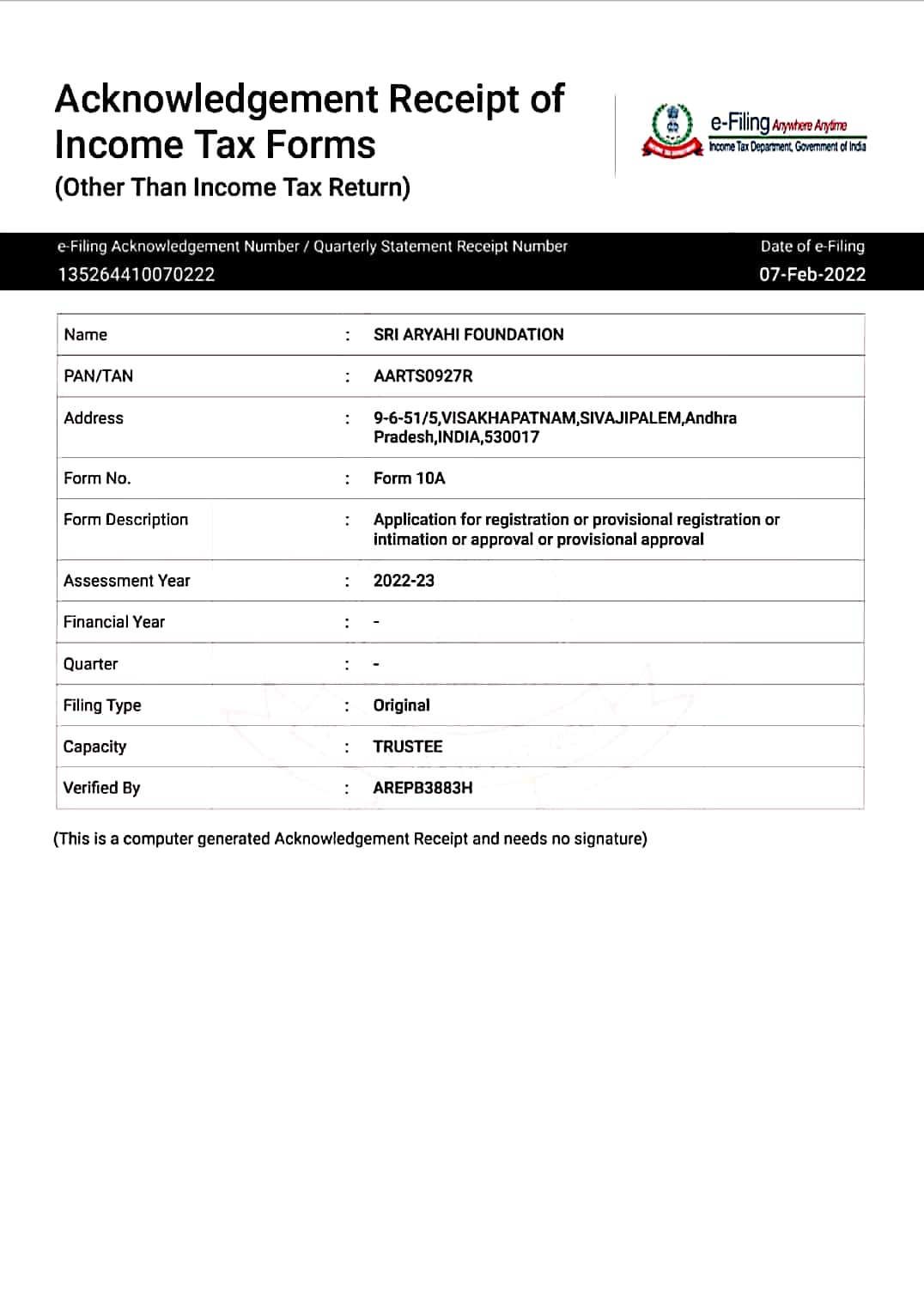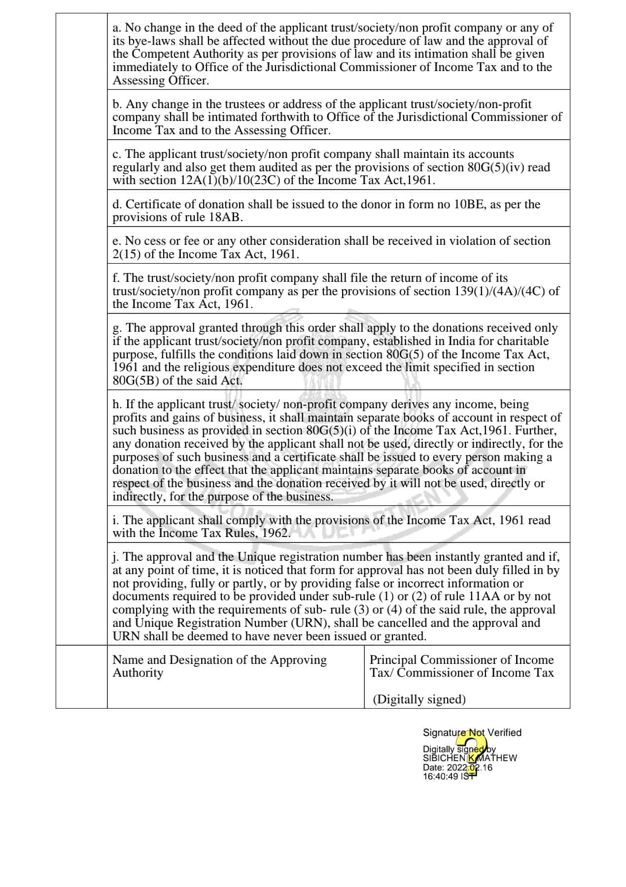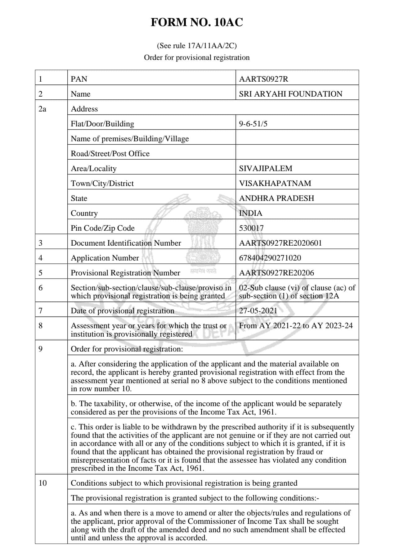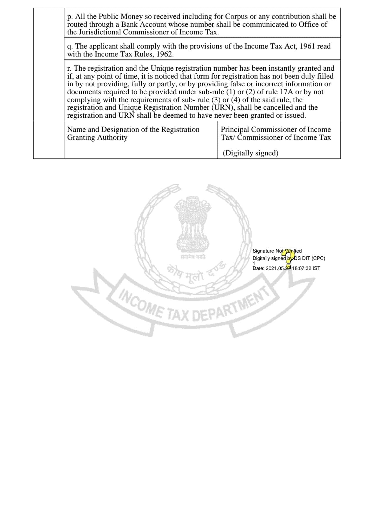 Order for Registration | Income Tax Department